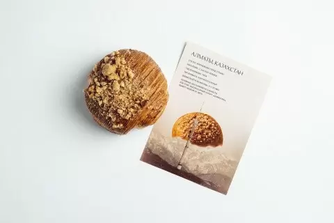 Каждый кусочек "Алмалы" словно откровение, которое переносит в мир, где живут сады у подножья величественных гор. Компоненты, используемые для её приготовления, рассказывают свою историю, погружая в атмосферу Алматы:
