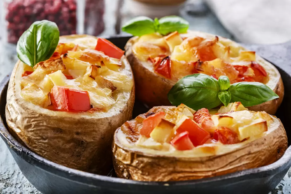 - Фаршированный картофель различными начинками — от овощей до мясных блюд.