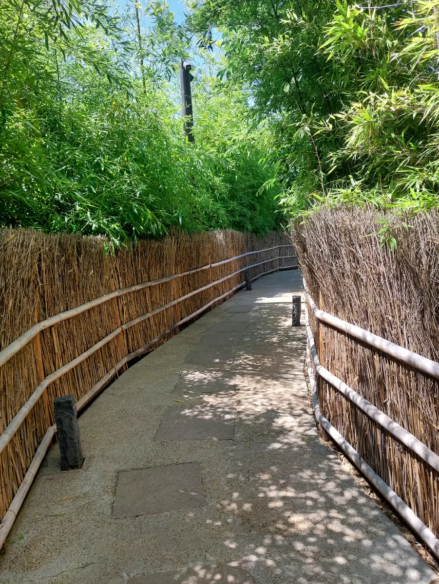 Кофейня напоминает традиционный японский чайный дом, построенный в стиле Киото. У её входа встречают фигуры в японской одежде, добавляя атмосферы восточной экзотики. Внутри кофейни посетители могут выбрать места на двух этажах. Лучше всего направляться на второй, где открываются живописные виды на сад, позволяя насладиться не только вкусной едой, но и красотой природы.