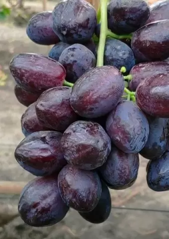 Грозди сорта Сюзанна относительно крупные, часто конической формы, а размеры ягод варьируются от 16 до 22 граммов. Их выразительный тёмно-красный цвет и налет пруина делают их притягательными для глаз. Мякоть нежная и сочная, с лёгким мускатным ароматом и гармоничным вкусом, который никого не оставит равнодушным.