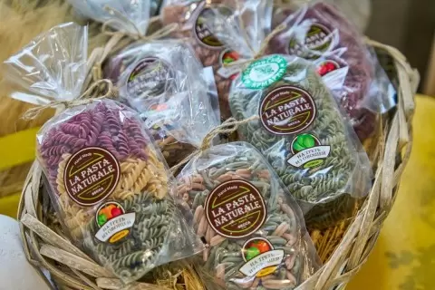 Краски и насыщенность этих изделий достигаются благодаря сочетанию соков и жмыха из свежих овощей, таких как свекла, шпинат, томат, тыква и базилик. Овощи составляют целых 33% рецептуры пасты, что делает её не только аппетитной, но и полезной для здоровья.