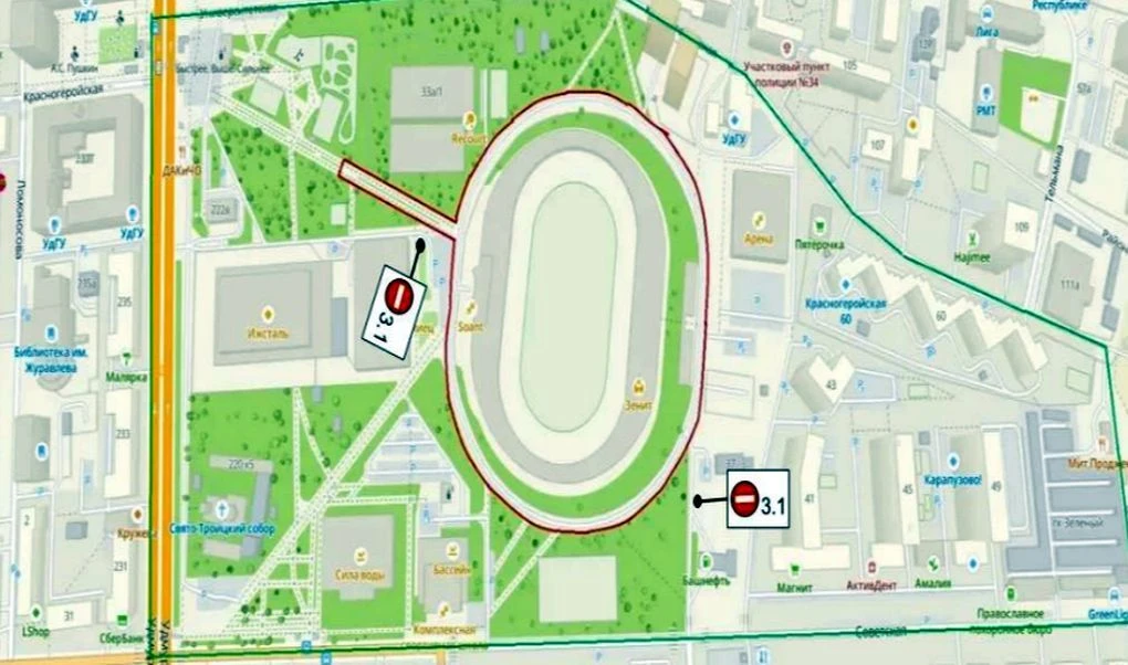 Проехать нельзя будет дальше автозаправки у перекрёстка улиц Советской и Орджоникидзе, а также по проезду у крытого катка «Олимпиец».