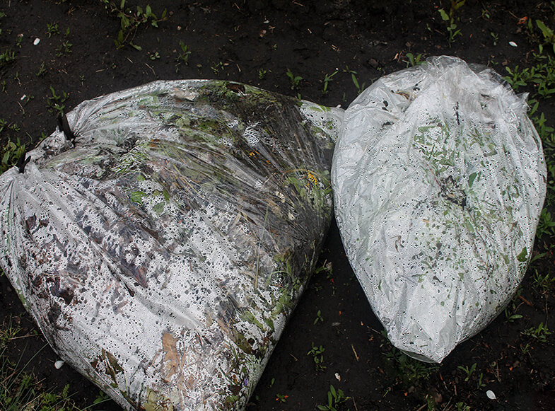 Первый шаг — собрать травы. Соберите весенние сорняки, которые вы удаляете с грядок, ягодных и цветочных посадок. Важно использовать прозрачный полиэтиленовый пакет, в который складываются свежесобранные сорняки. Пакет следует плотно завязать и оставить на солнце, чтобы травы начали ферментироваться.