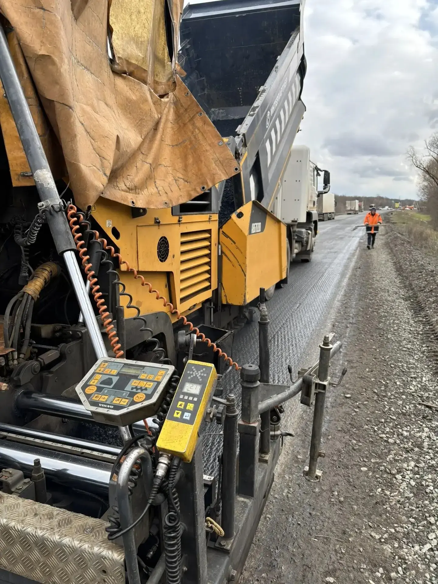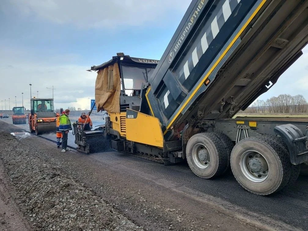 Подготовка к обновлению дороги началась на прошлой неделе, рабочие срезали фрезой старый слой асфальта. Теперь подрядчик приступил к укладке нового покрытия.