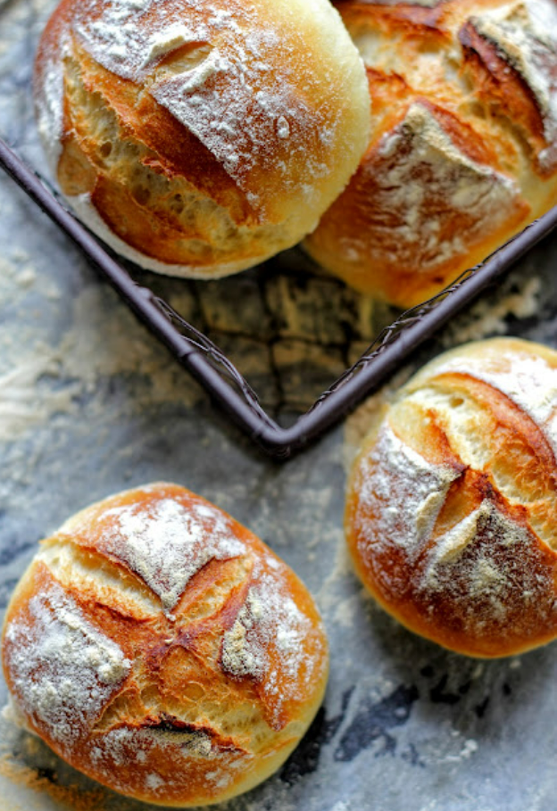 Важно не спешить с дегустацией: сразу после выпекания лучше накрыть булочки полотенцем и дать им отдохнуть 15 минут. За это время булочки станут удивительно мягкими внутри, а корочка сохранит хрустящий эффект. Эти хлебные угощения порадуют даже самых взыскательных гурманов!