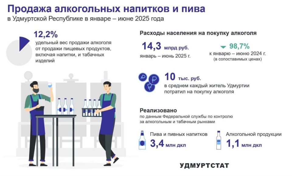 Жители республики за первую половину года потратили на покупку алкоголя 14,3 млрд рублей, сообщил Удмуртстат. Эта сумма составляет чуть больше половины годовых доходов бюджета Ижевска.В среднем каждый житель республики, включая детей, беременных и...
