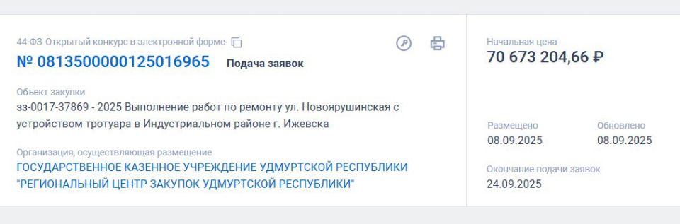 Конкурс запущен на портале госзакупок. Начальная цена контракта — 70,6 млн рублей.Протяжённость ремонтируемого участка составляет 1,75 км от перекрёстка с улицей Северной до перекрёстка с ижевской объездной. Планируется, что до 1 июня 2026 года...